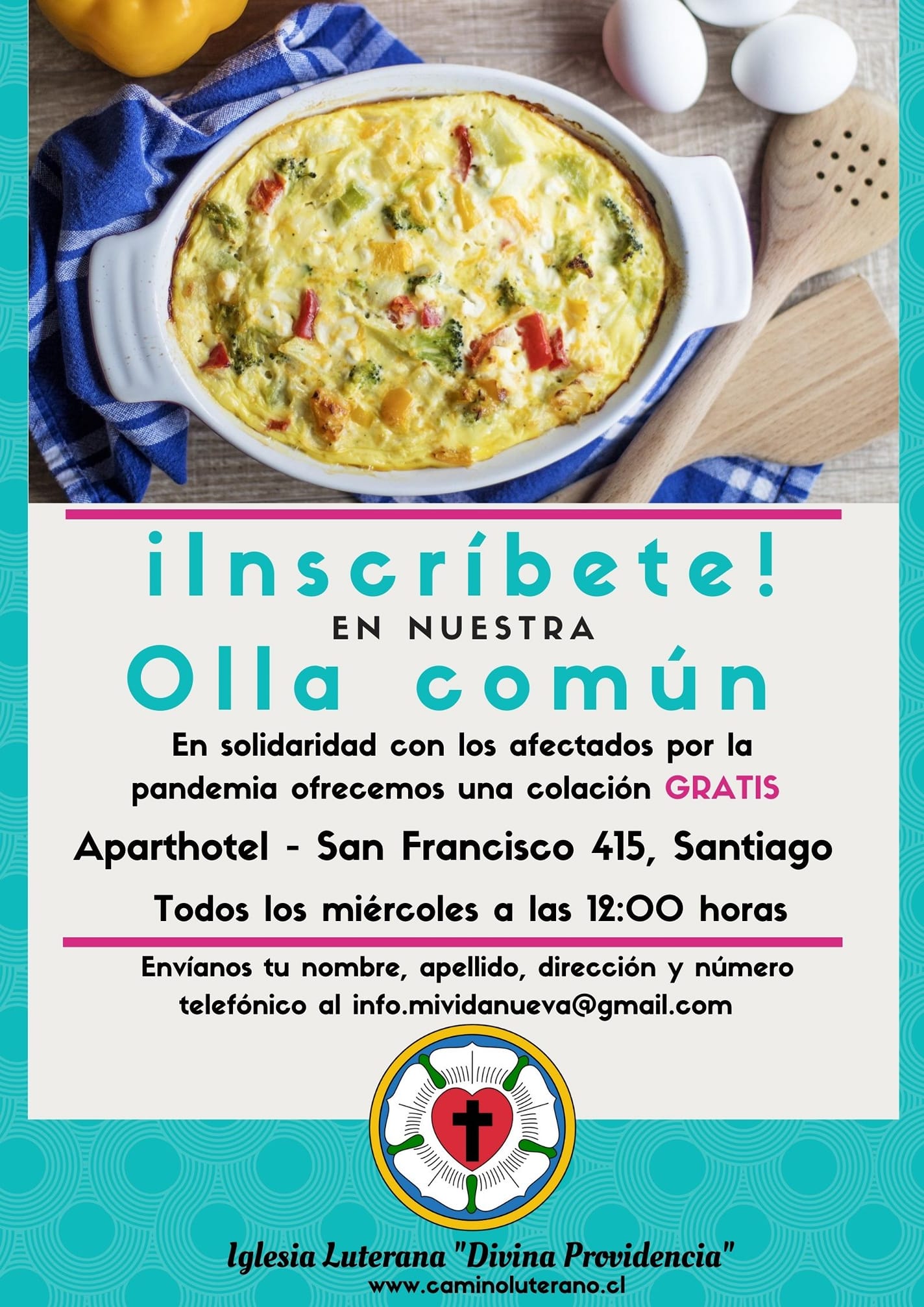 Likewise, in Santiago Centro, the members of Divine Providence Lutheran Church prepare hot lunches on Wednesdays and distribute them from the parking lot of a local hotel. Members and others donate fresh fruits, vegetables, meat or other food items to provide this welcome relief. This week’s “Olla Común,” or Community Pot, was a hearty chicken soup enjoyed by over 80 hungry people.