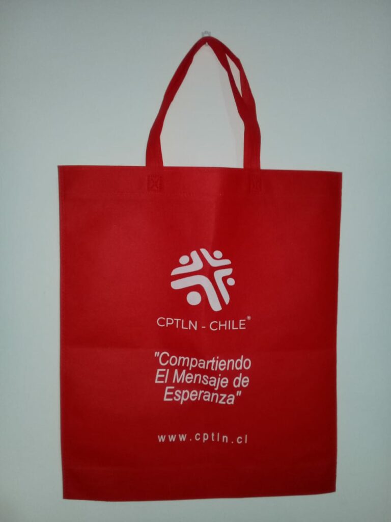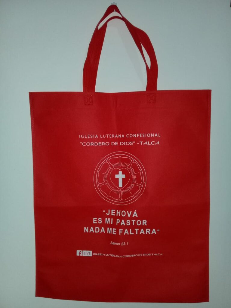 Environmentally friendly bags are provided with contact information for the church and for Lutheran Hour Ministries in Chile.