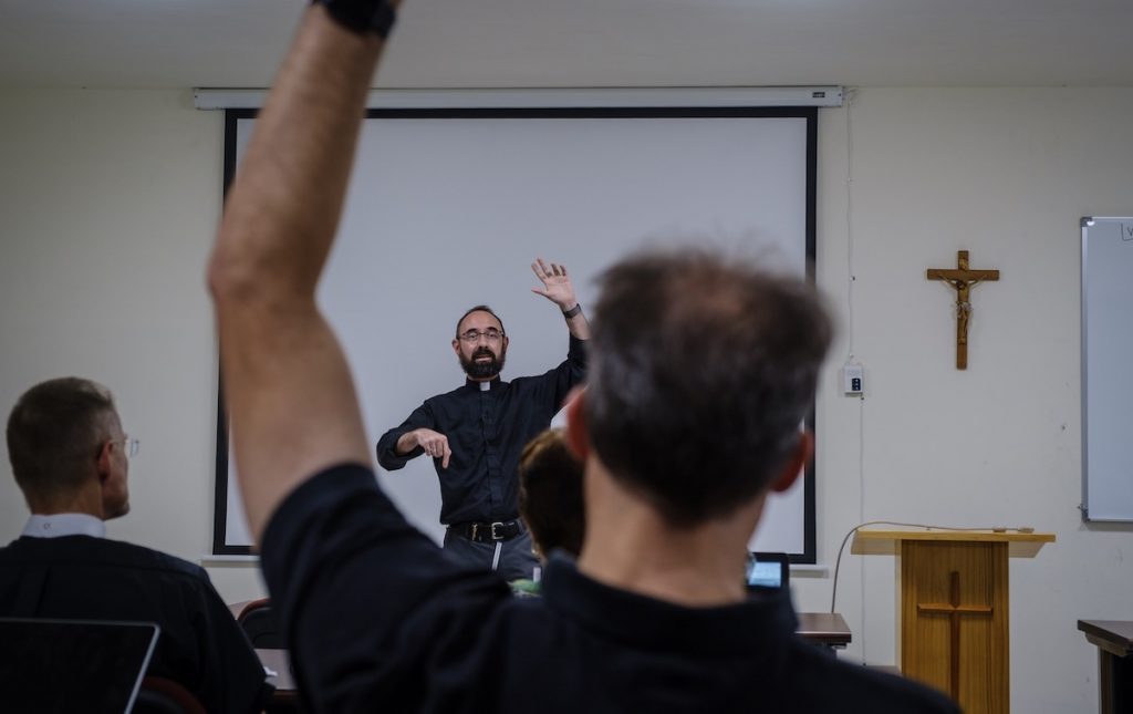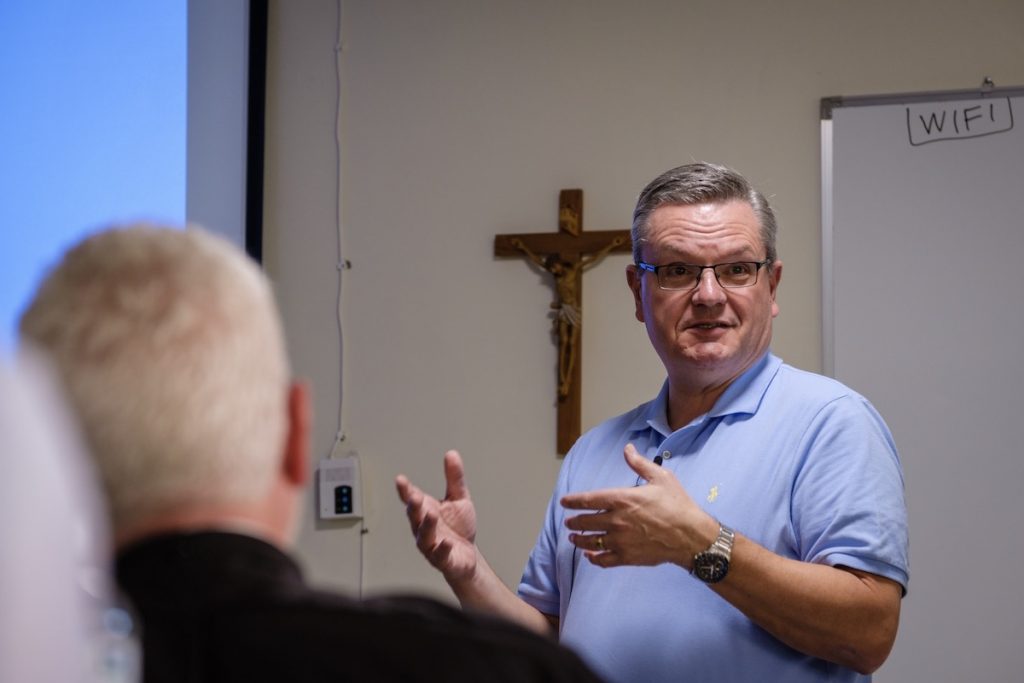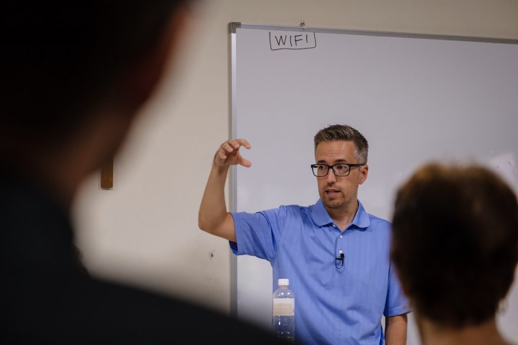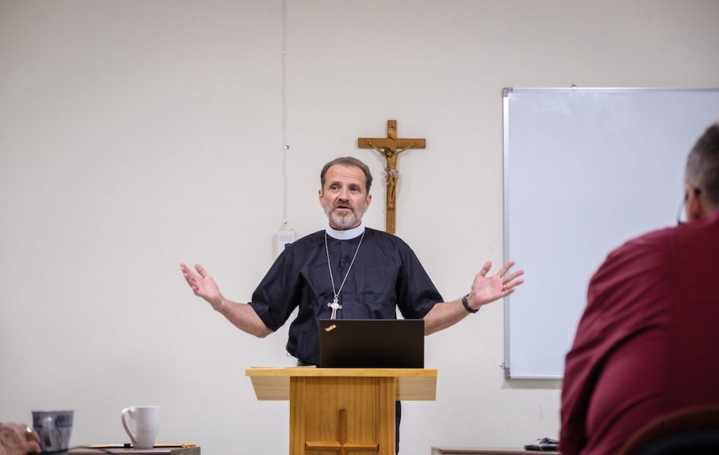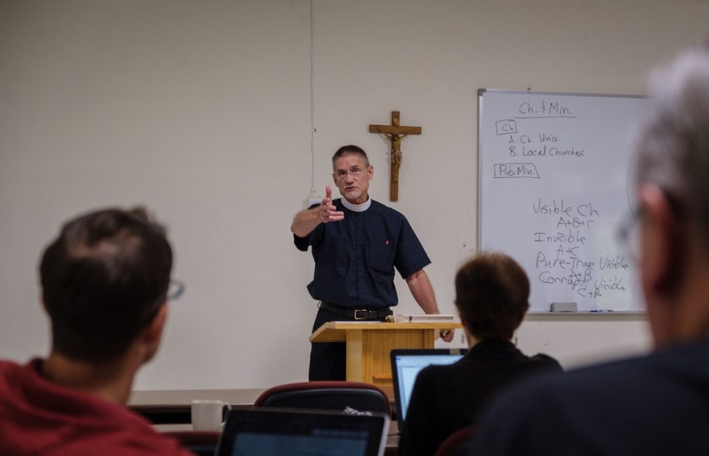 The Rev. Dr. Daniel Jastram leads a theological education session.