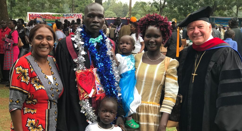 Okach Opiew with his family and LCMS Missionaries Shara Osiro and Rev. Tom Aadland