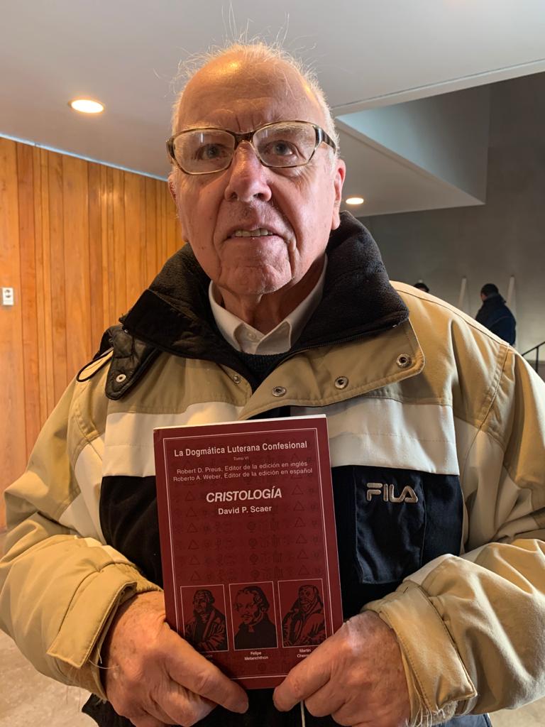 Dr. David P. Scaer with a copy of his book in Spanish, Photo: Rev. Ted Krey