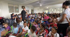 Missionaries, seminarians and congregation members in Palmar Arriba, Dominican Republic, planned for about fifty children from the community to attend a week-long Bible camp. The camp gave children a place to be for a couple of hours during the heat of the Dominican afternoons and featured daily Bible stories, memory work, games, crafts, songs and snacks.